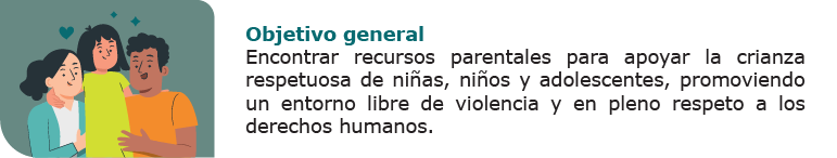 - Conocer la definición, características y beneficios que la crianza respetuosa trae al desarrollo de las niñas, niños y adolescentes y a sus familias, así como estimular su práctica cotidiana.